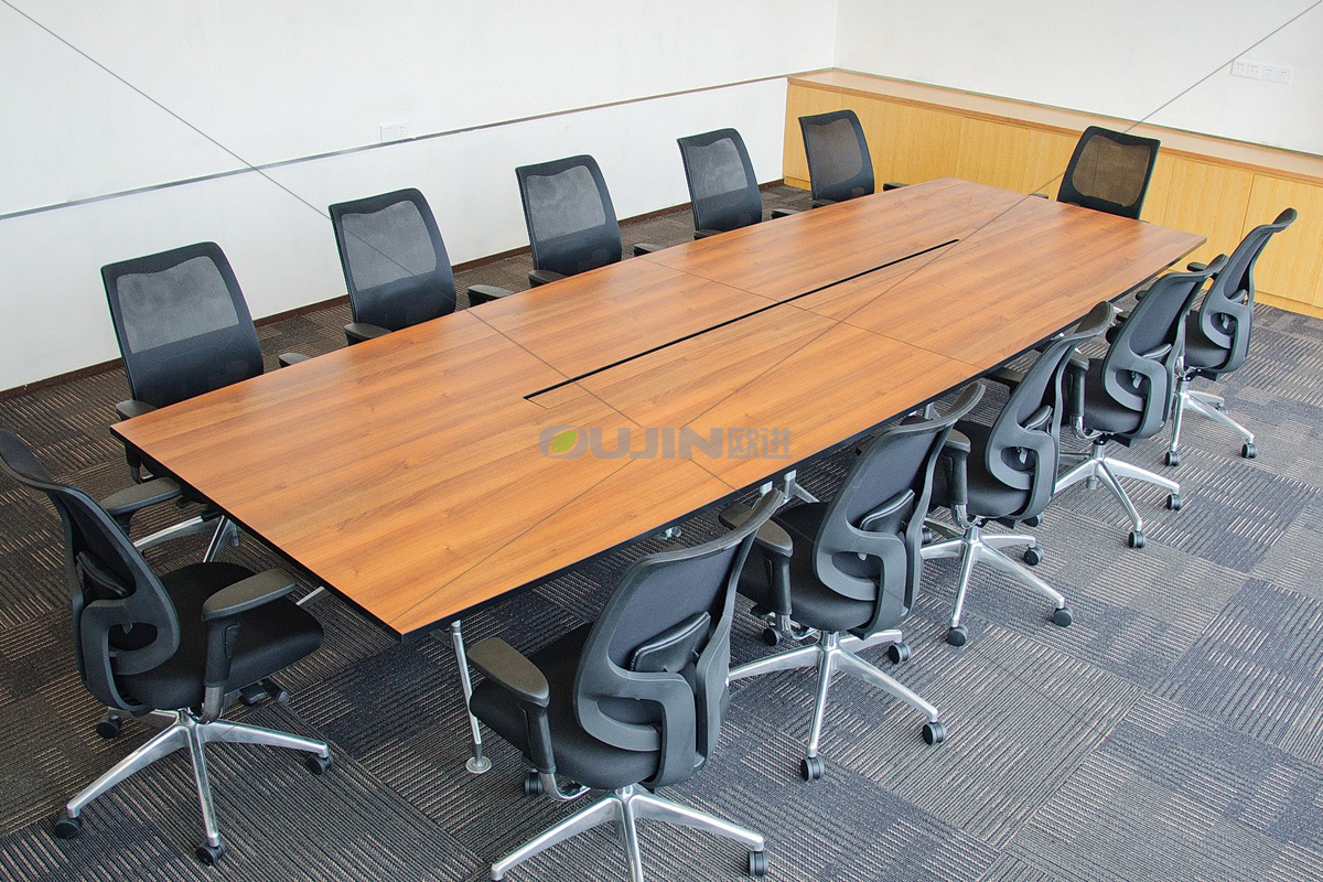 會議桌采用木紋色配以簡潔的鋼腳臺架,在視覺上如同顯得非常簡約而不簡單。這樣的設計意在用現代的辦公家具造就一個舒適活躍的會議氛圍,鼓勵大家更多的遇見、交流與碰撞。