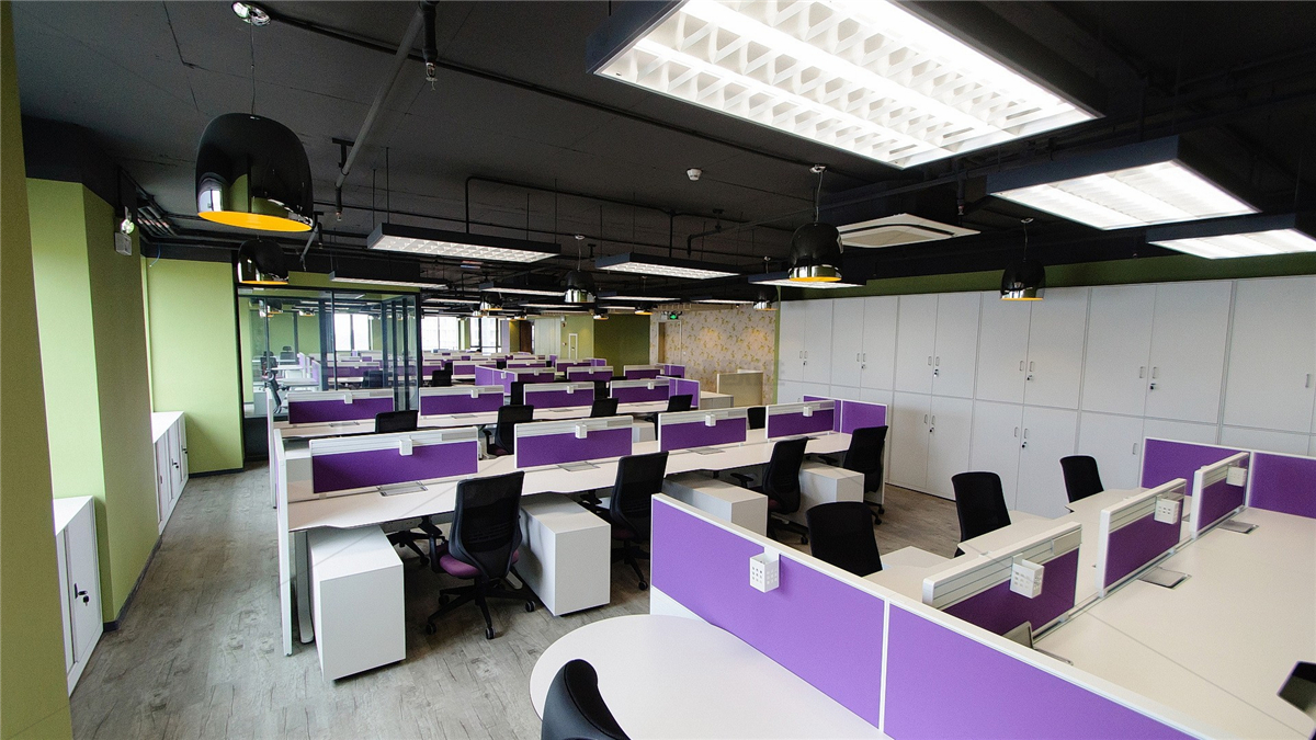 在通透、有序的公共辦公環境中。統一采用具體公司標注性的紫色調,發揮色彩管理功能的同時,也讓整個辦公空間統一協調,在便于溝通交流的同時又避免了面面相覷的尷尬。紫色,白色的相互作用,鮮活的色彩也為整個工作區營造出活力無限的辦公氛圍。