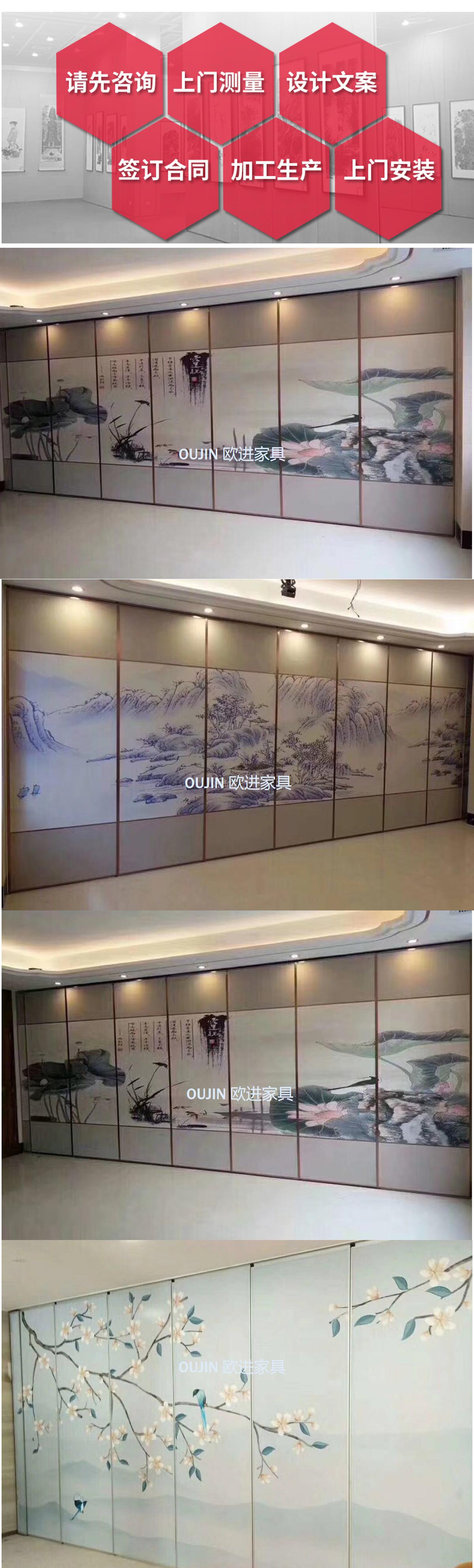 活動隔音高隔斷適用于五大場景:高檔酒店,星級賓館,高檔會議室,大型 展覽廳河舞蹈教室。擁有素板,面飾板山水畫,硬包和軟包等款式,多種皮革顏色可供選擇。