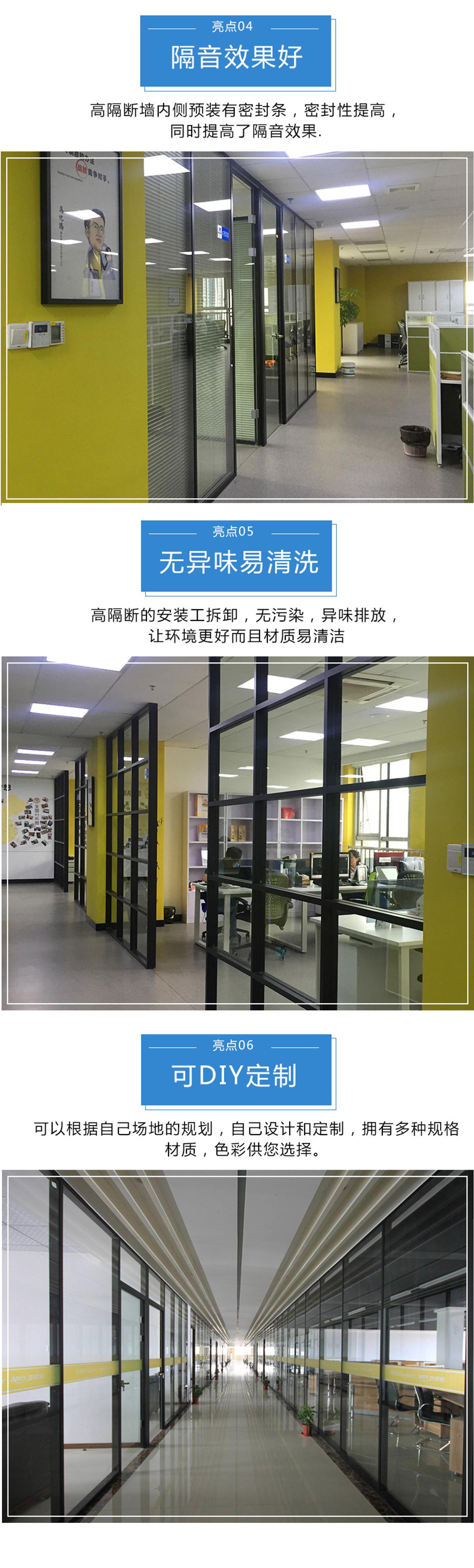 玻璃隔斷無疑是辦公室玻璃應用中最惹人眼球的,尤其是辦公樓層不是很高的時候,打造一個玻璃隔斷墻能夠開拓視野,減少空間壓迫感。同時由于玻璃的反射光能比較好,配合燈光和玻璃自身顏色,能夠打造出室內的絢麗空間,營造唯美浪漫和溫馨的氛圍。