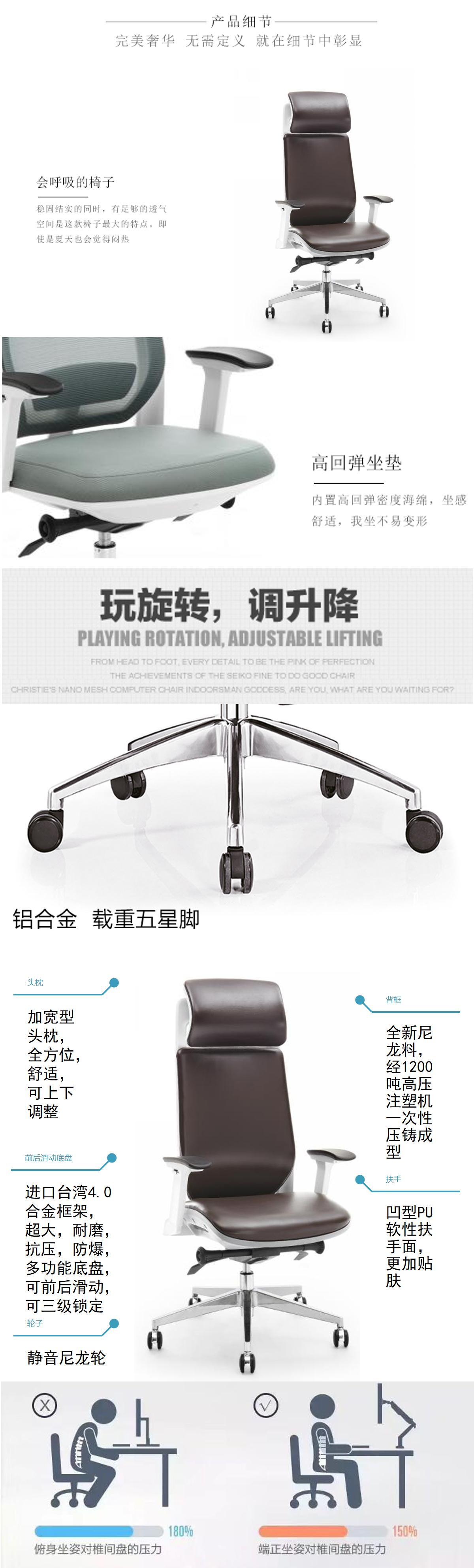 悠活時尚大班椅是一款舒適透氣網布+牛皮的老板大班椅。對長期久坐能緩解疲勞,人體工學設計,恰到好處,對頸椎、腰圍起到了有效的保護作用。